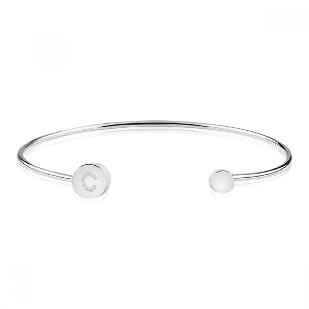 Minimalistisk armring i stål med en gnistrande bokstav C dekorerad med kristaller. Den rena designen gör att smycket passar både till vardag och fest. Armringen är lätt att använda tack vare sin öppna form och har en innerdiameter på 5,7 cm.