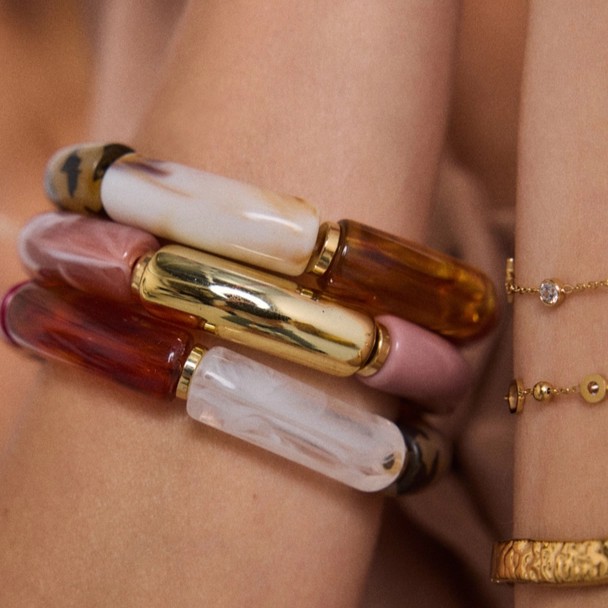 Det elastiska bandet ger en följsam passform och gör armbandet till ett självklart vardagsval som lyfter både minimalistiska och färgstarka outfits.