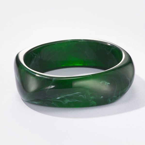 En djupgrön, nästan marmorerad armring som för tankarna till skogsdjup och lyxig fransk design. Armringen ger varje outfit en konstnärlig tyngd och bjuder på en grön färg som skiftar i ljuset.
