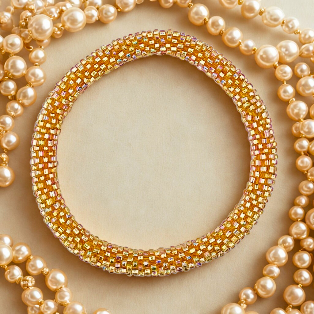 Ett tips är att rulla armbanden ett och ett över handen när dom tas på och av.