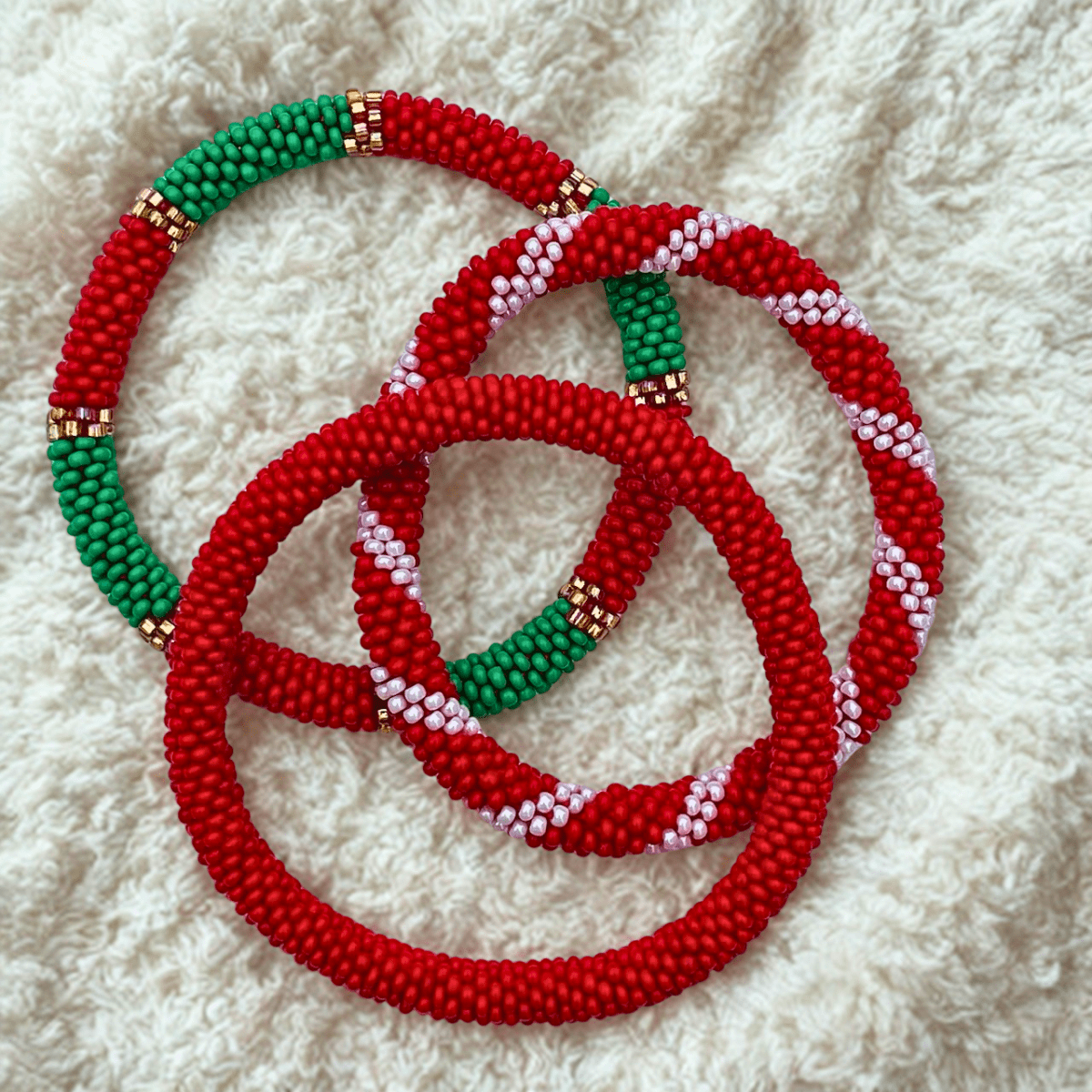 Ett tips är att rulla armbanden ett och ett över handen när dom tas på och av.
