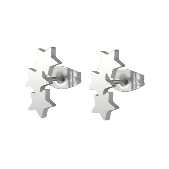 Ge din stil en touch av himmelsk glans med våra eleganta stålörhängen med tre sammansatta stjärnor.