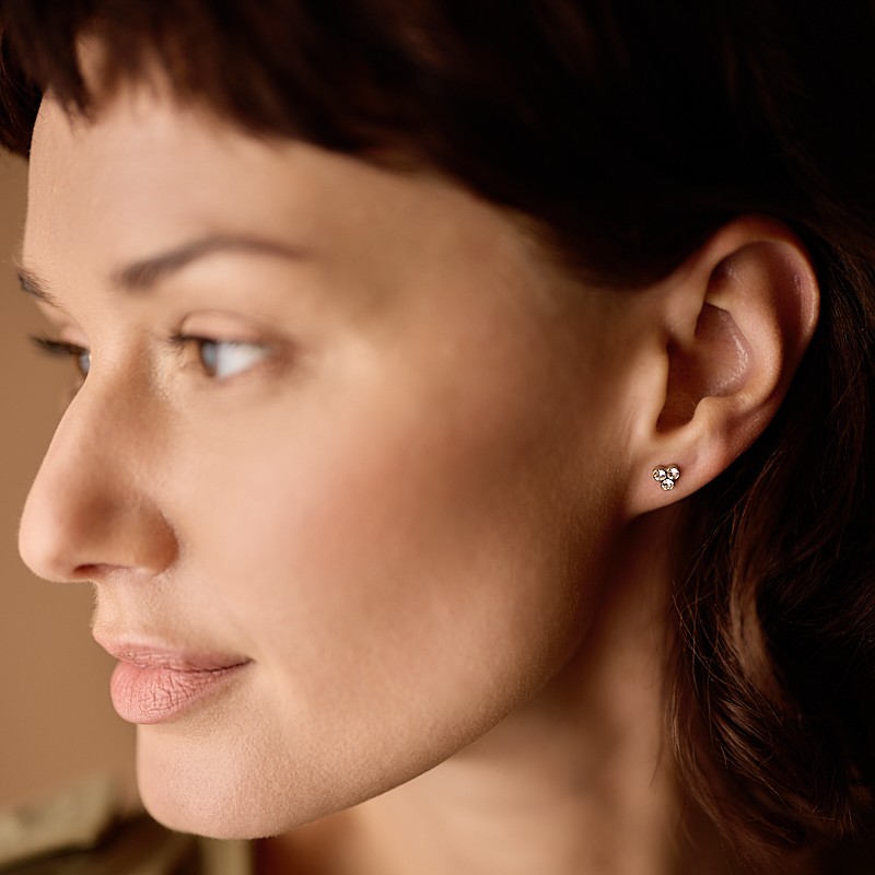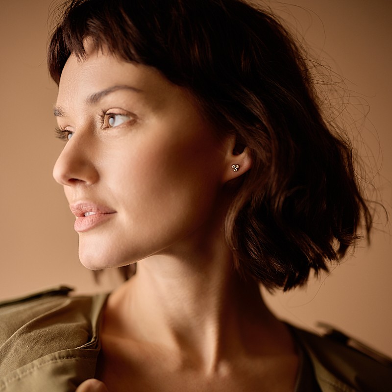 Hudvänliga örhängen från Blomdahl i stilren design med tre gnistrande stenar. Tillverkade i medicinsk titan med guldtonad finish, utvecklade i samarbete med hudläkare för att passa även känslig hud.