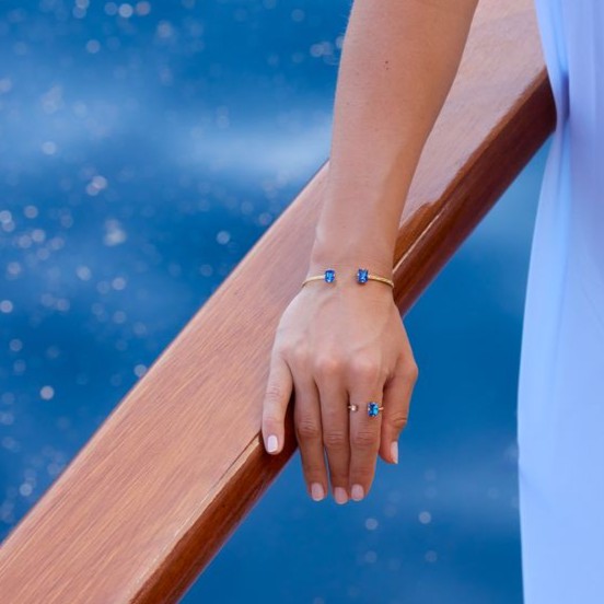 Modell; Diora Ring Gold / Recreared Blue Combo.
