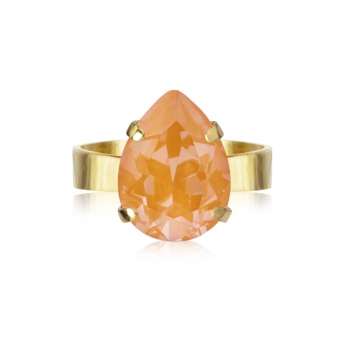 Ring av modellen Mini Drop från varumärket Caroline Svedbom med en droppformad kristall på, här i orangefärg.