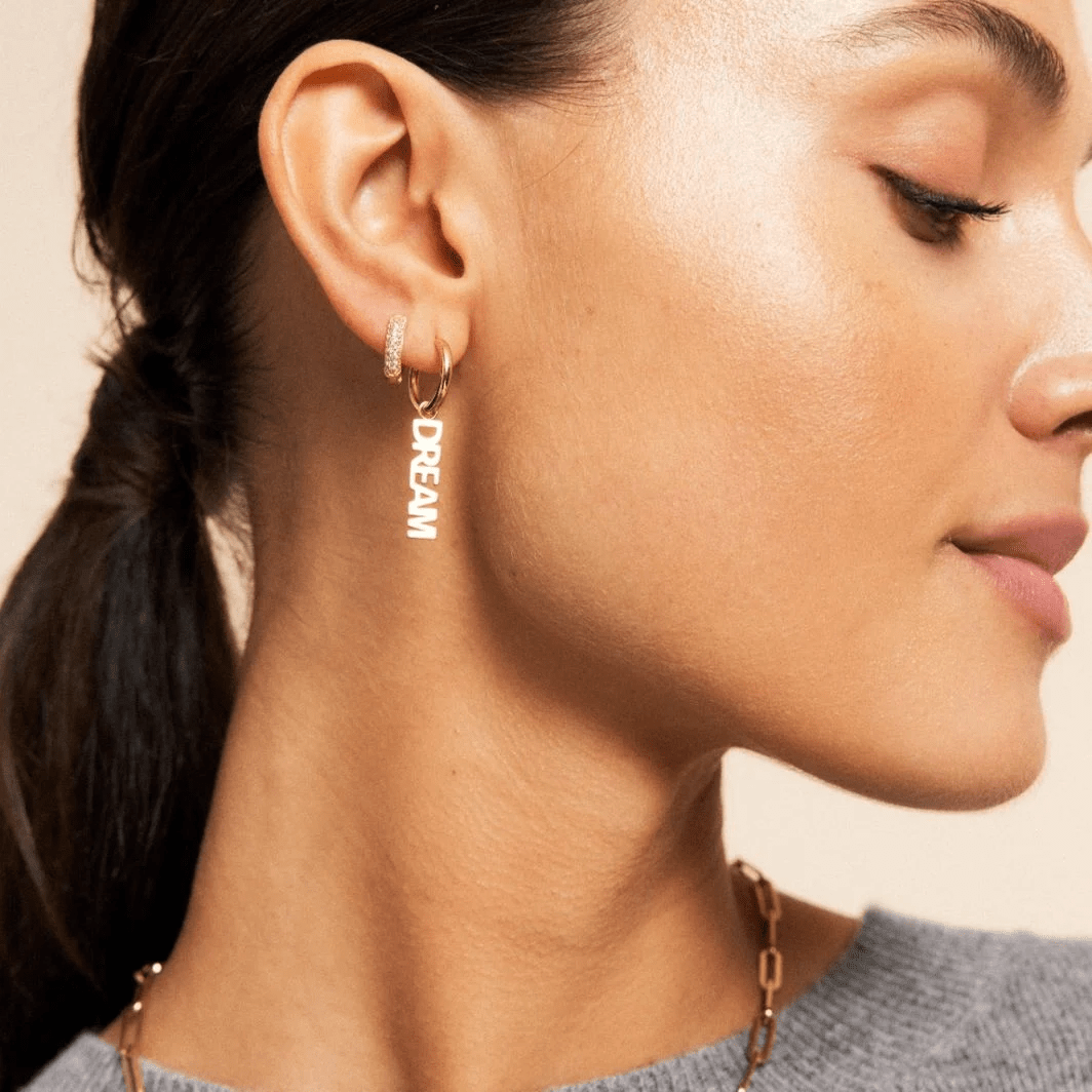 Drömmarnas örhängen ser vi i Dream hoops med fint utskuren text, ett örhänge du älskar att bära jämt och ge bort som present.