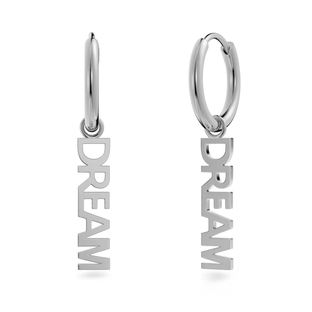 Dream Hoops ses här i blankt rostfritt stål. Texten går att ta av så man kan bara använda creolen som omväxling.