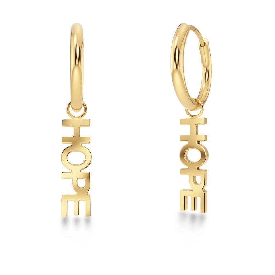 Hoppet för framtiden och för dig signalerar Hope hoops det med den fint utskurna texten. Örhängena blir en favorit som du bär alla dagar i veckan och gärna ger bort som present. Hope Hoops ses här i blankt 14 karat guldplätering rostfritt stål. Texten går att ta av så man kan bara använda creolen som omväxling.