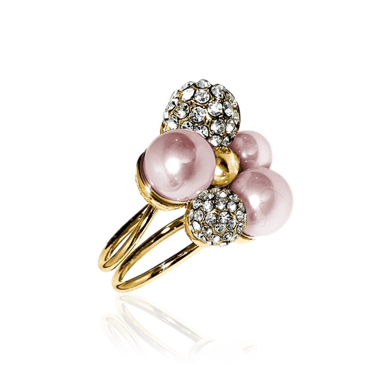 Upptäck den nya versionen av Ioakus älskade ring Berry – nu i varm guldfärg med mjukt skimrande rosa pärlor och kristallklädda kulor.