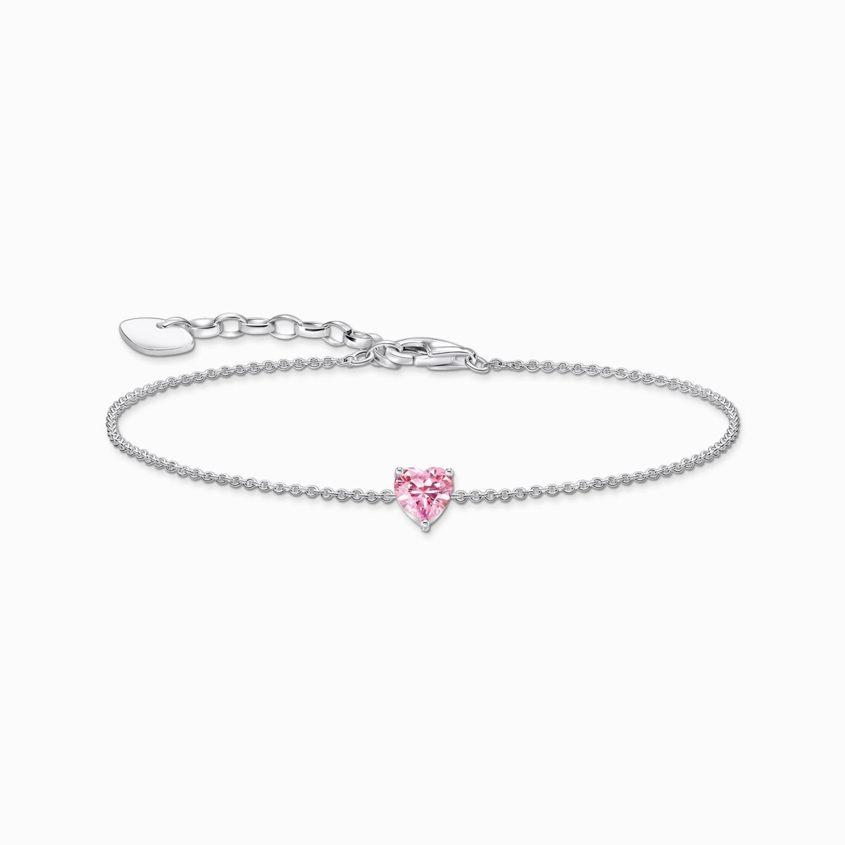 Mitt på armbandet sitter en hjärtslipad zirkoniasten i rosa. Denna gnistrande sten fångar ljuset på ett förtrollande sätt och fungerar som ett vackert blickfång.