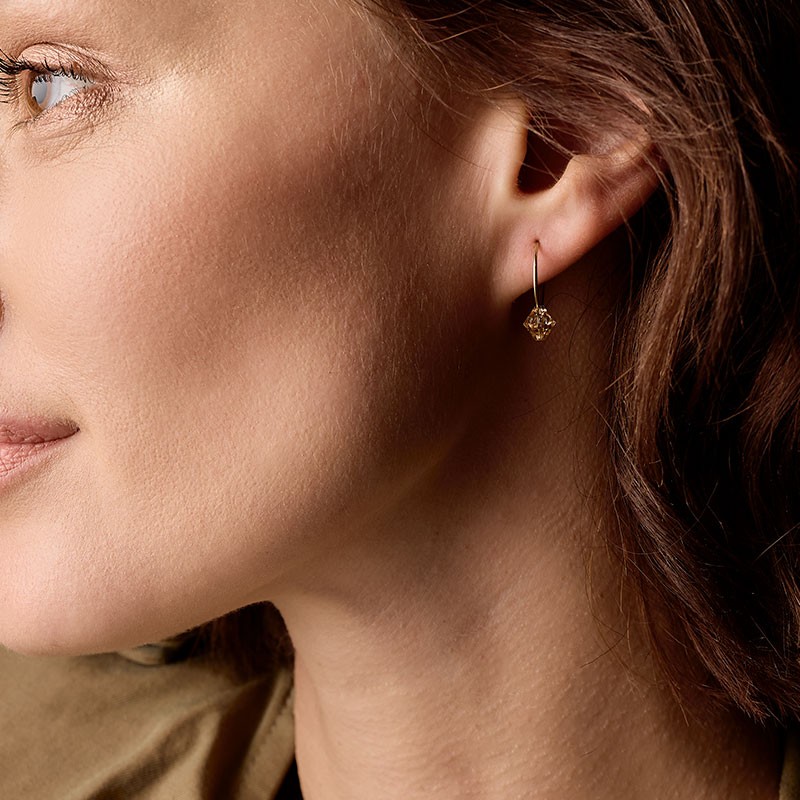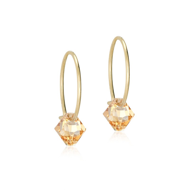 Örhängen från Blomdahl i modellen Bicone med en varm gyllene kristall som skapar ett exklusivt uttryck. Tillverkade i hudvänligt titan och framtagna för maximal komfort och minimal risk för hudirritation.