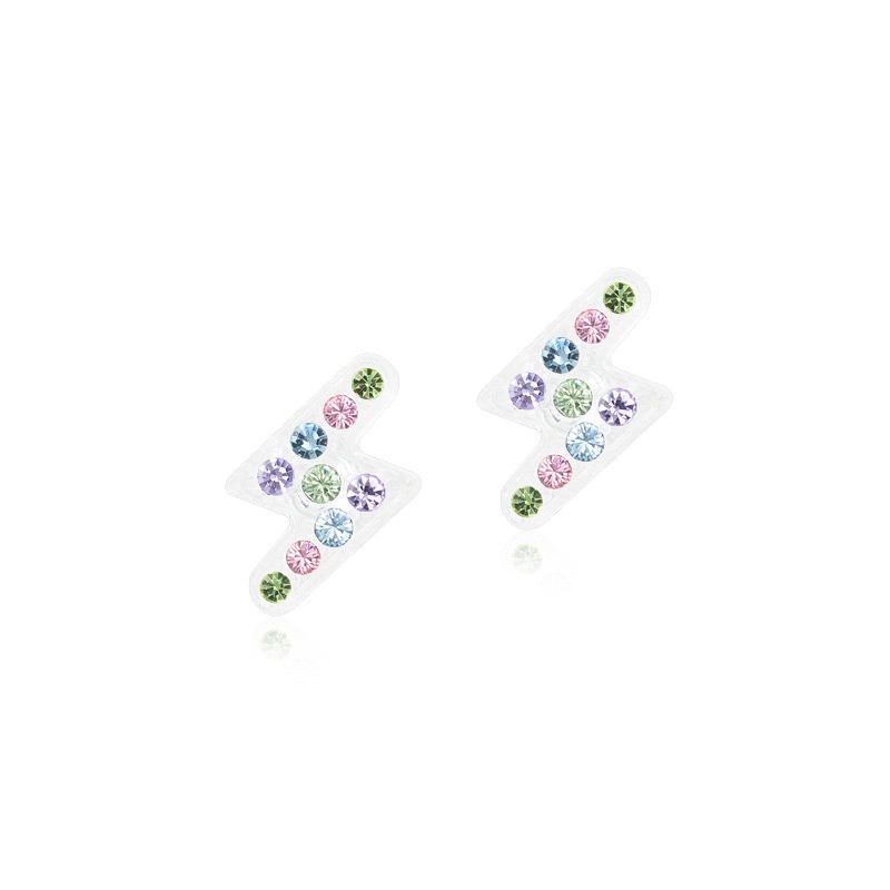 Färgglada barnörhängen i blixtform från Blomdahl, prydda med kristaller i flera mjuka nyanser som ger ett lekfullt och livfullt uttryck. Tillverkade i medicinsk plast som är hudvänlig och nickelfri, anpassad för barns känsliga hud.