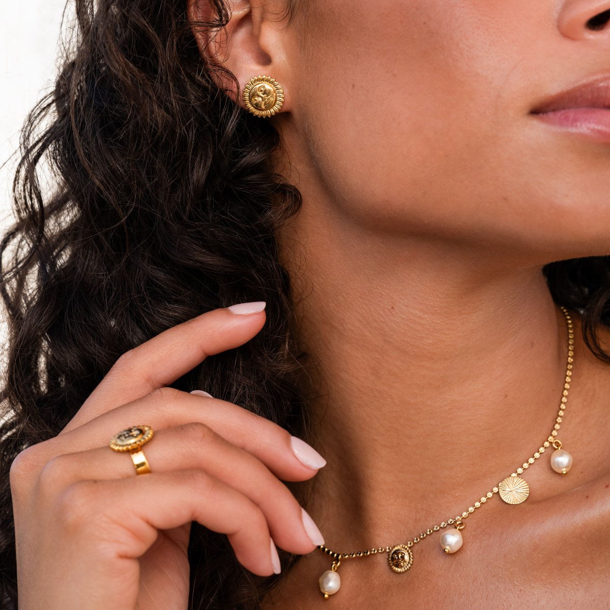Med eleganta solmotiv och skulpterade detaljer symboliserar smycket styrka.