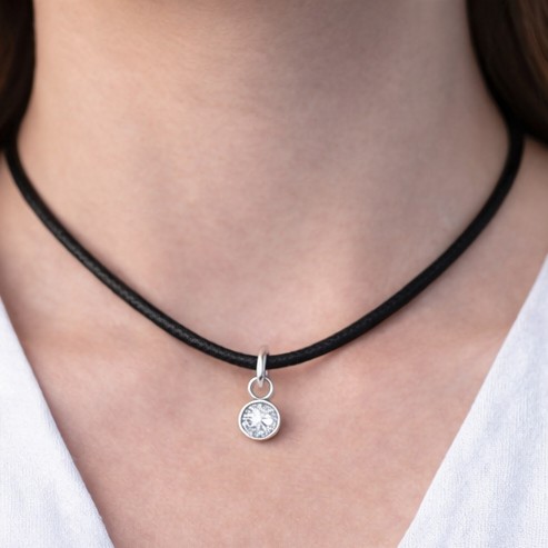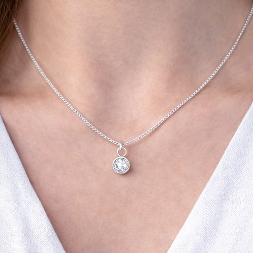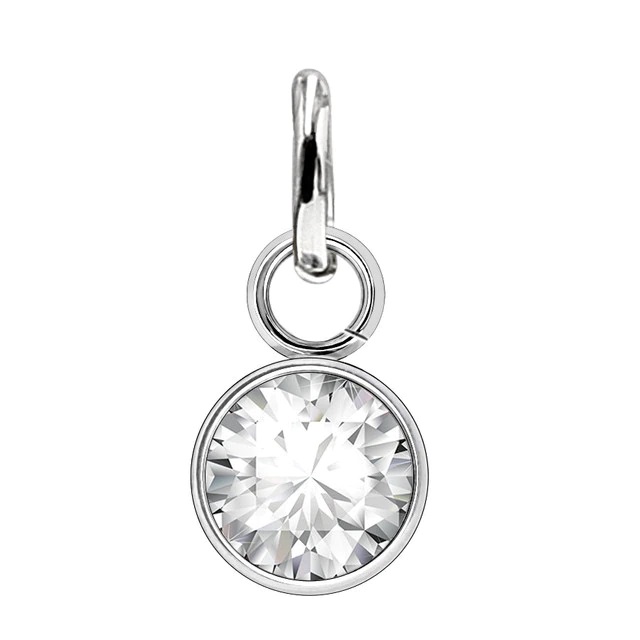 Liten berlock i stål med en klar kristall på, berlocken kommer från varumärket Anna K Jewelry och deras serie Birthstone.