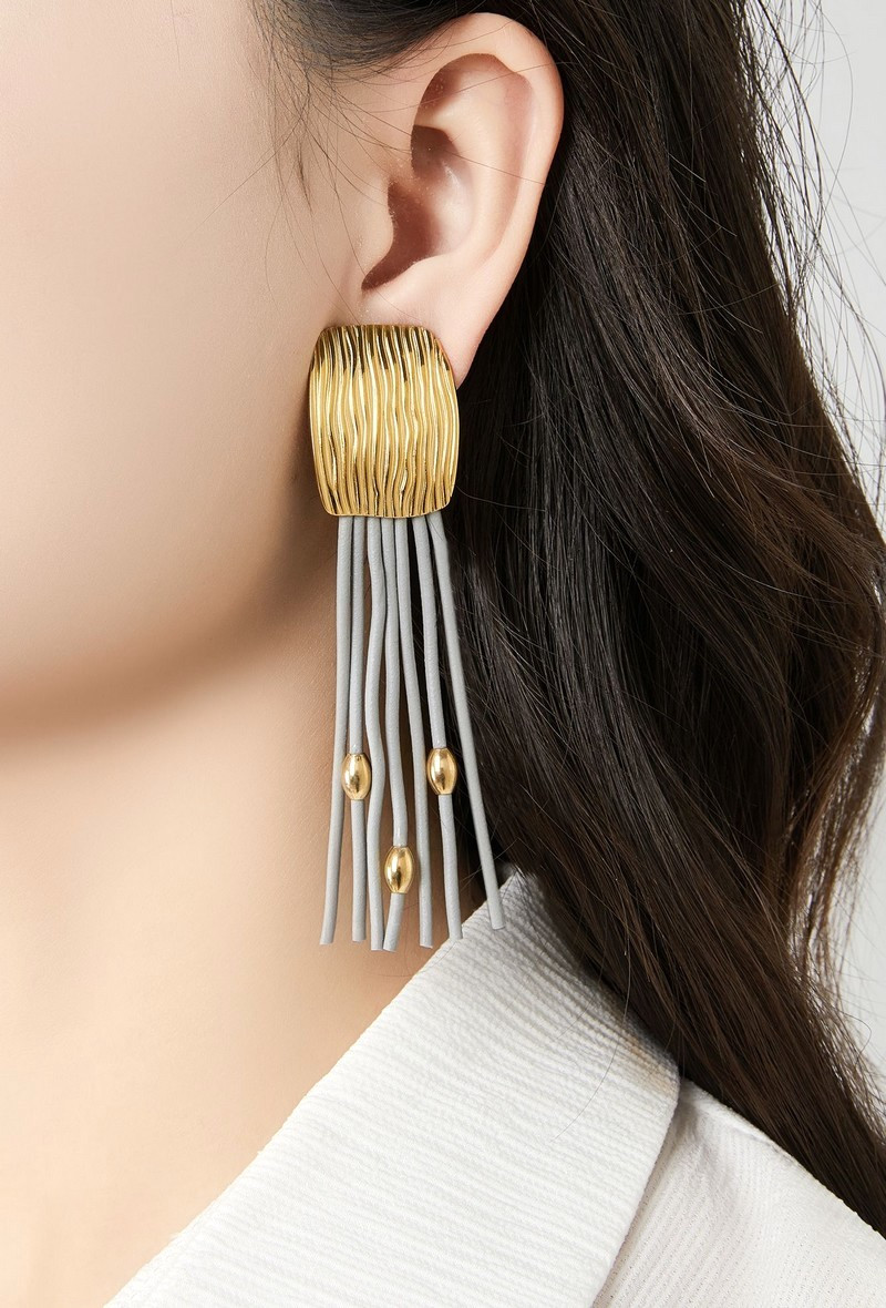 Den minimalistiska designen har en tydlig känsla av modern fransk stil där enkelhet möter det oväntade. De små metalliska detaljerna bryter av och ger ett ljust skimmer i rörelsen, vilket gör örhängena lika intressanta i dagsljus som under kvällens ljus.