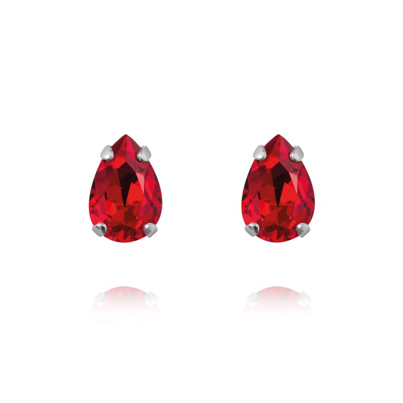 Modell; Petite Drop Stud Earring Rhodium Light Siam.