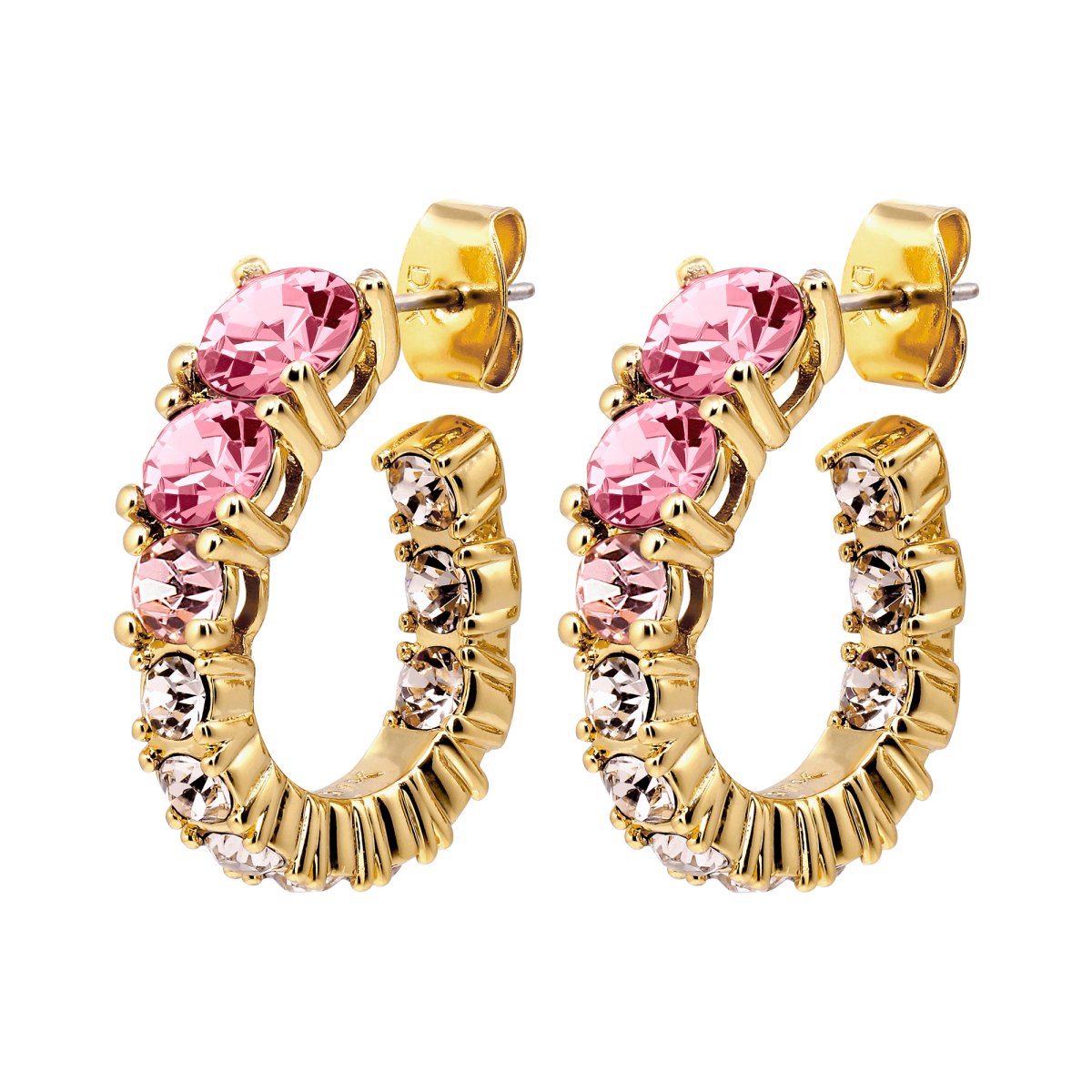 Kolos är ett statement-örhänge med maximal lyster och självklar elegans. Den halvcirkelformade designen är rikt dekorerad med fasetterade stenar i harmoniska färgnyanser som fångar ljuset från varje vinkel. Den guldfärgade infattningen ger örhängena en varm, exklusiv känsla och skapar en vacker kontrast mot stenarnas klara skimmer.