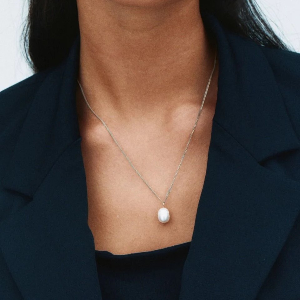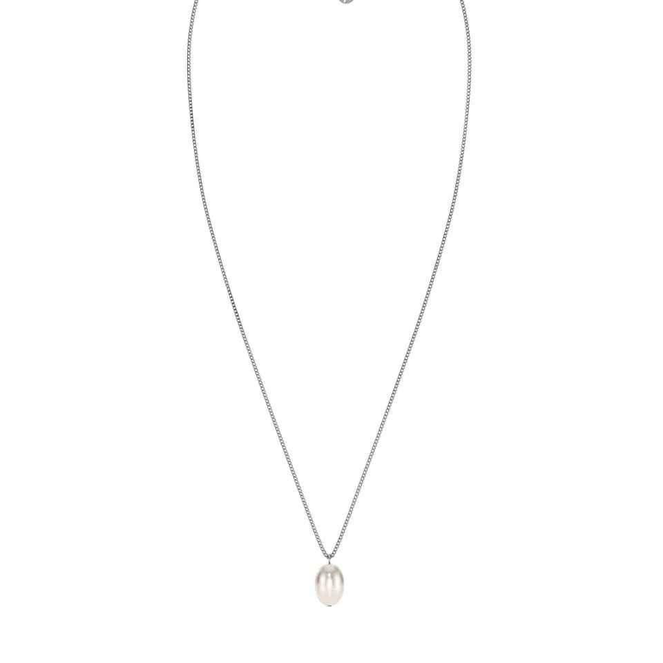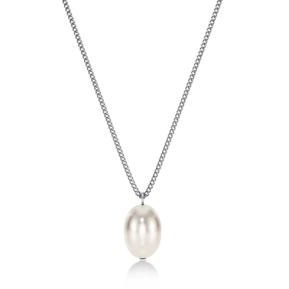 Edblads halsband i serien Perla har en stor sötvattenpärla som vackert hänge på en fasettslipad ankarkedja, här i stål.