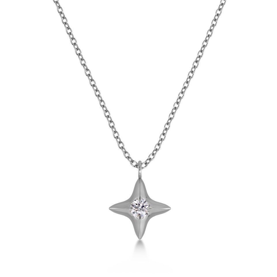 Halsband Stellar i stål är en glittrande stjärna som lyser upp tillvaron, för dig själv eller någon du tycker om. På halsbandet skrider kedjan genom hänget med den vackra stjärnan med en glittrande sten. Kombinera gärna med seriens andra delar.