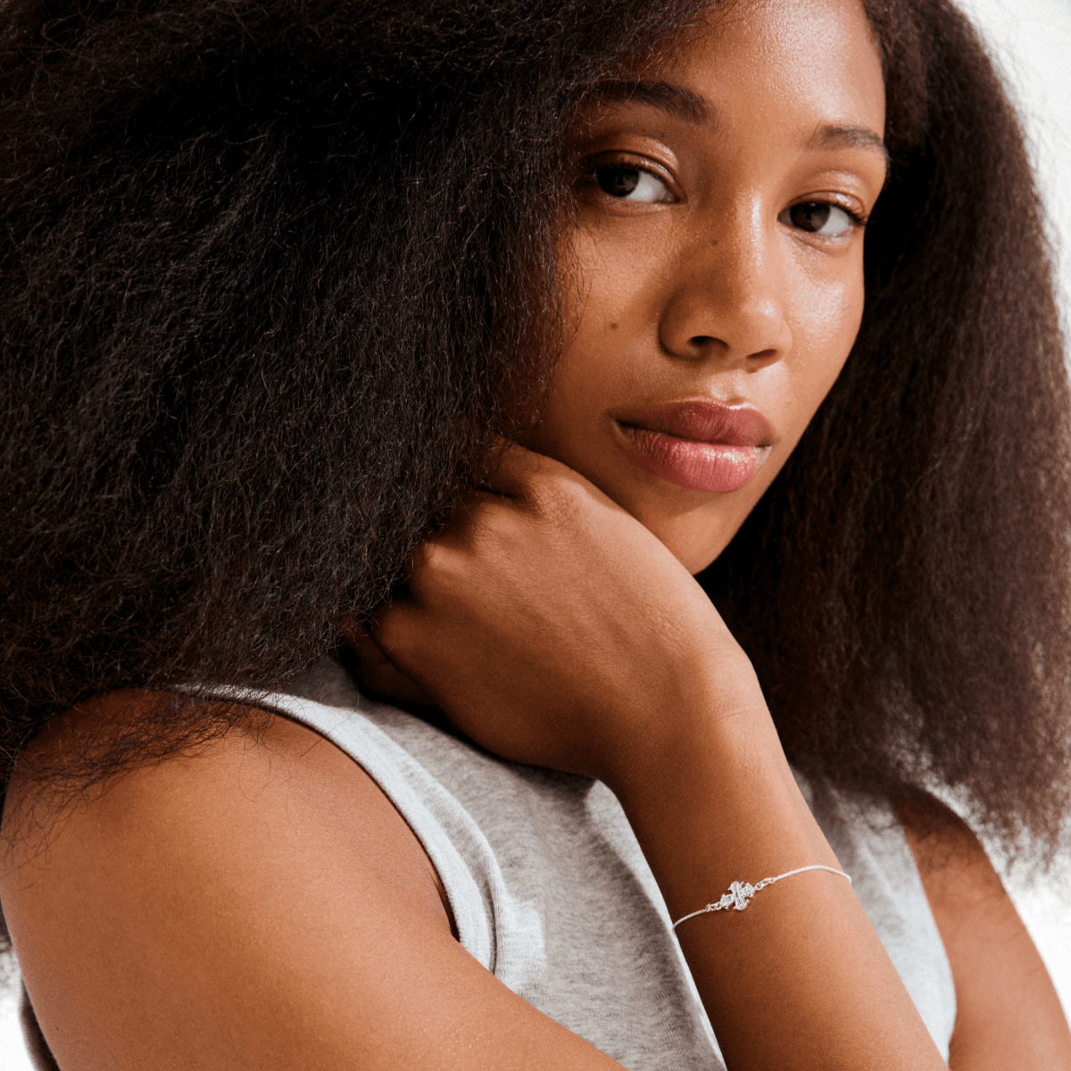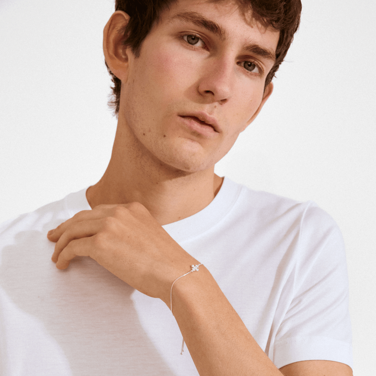 Den eleganta silverfärgade kedjan är justerbar för optimal passform och gör armbandet till en självklar favorit i smyckesgarderoben. Bär det som en meningsfull detalj, eller kombinera med fler armband för en personlig och trendig styling.